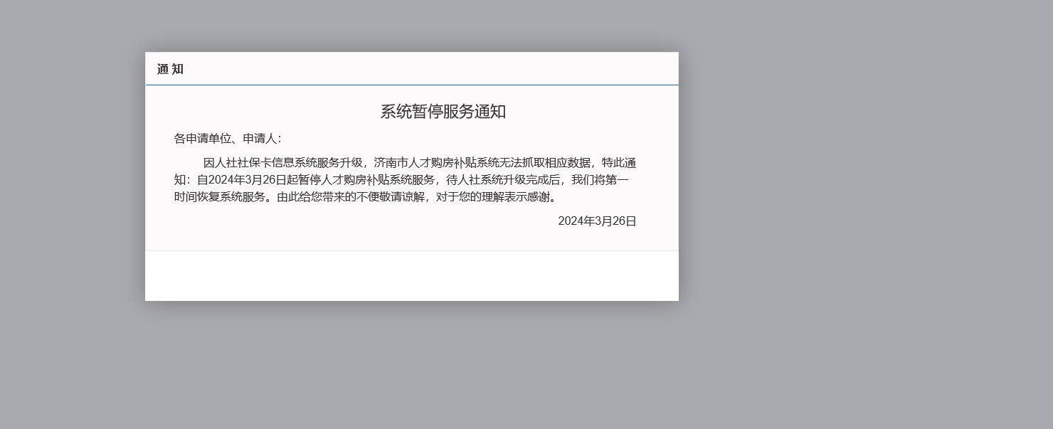 濟(jì)南邦得人力資源有限公司轉(zhuǎn)發(fā)高層次人才購(gòu)房補(bǔ)貼系統(tǒng)暫停服務(wù)通知
